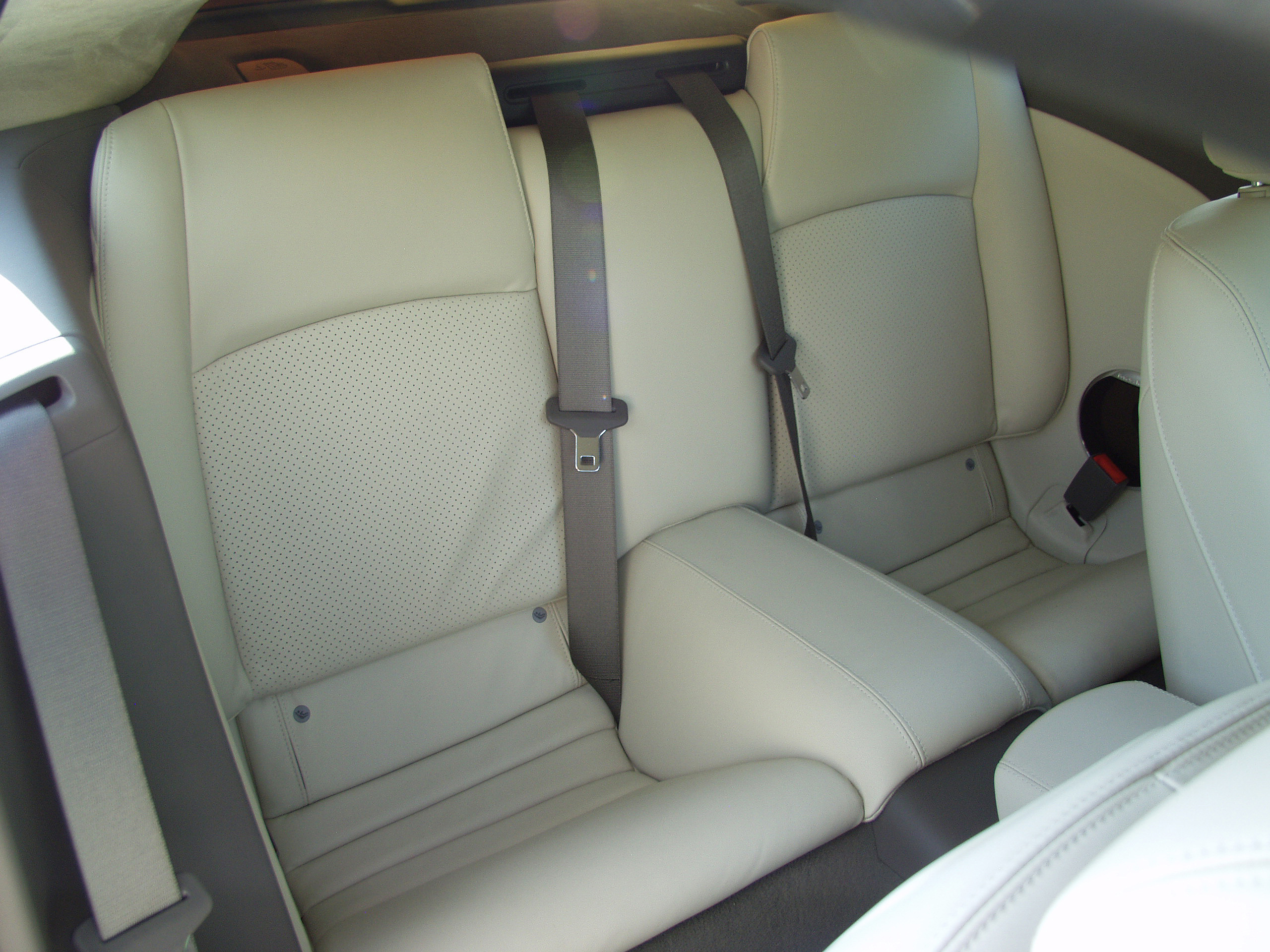 The 2010 Jaguar XLR Coupe sport seats, however, have an extra adjustability. The front seatback’s bolsters can be set narrower or wider to accommodate passengers who are, well, narrower or wider. There’s a back seat but he’s mean one, Mr. Grinch, if he expects anyone larger than Cindy Lou Who to ride in back. Jaguar is optimistic–or perhaps realistic–with a warning label on the rear hatch warning against hitting the head of a taller person sitting in the deeply pocketed back seat when closing the hatch. Where, it’s fair to ask, would the legs of anyone that tall fit to begin with? And once there, how would said person get out?