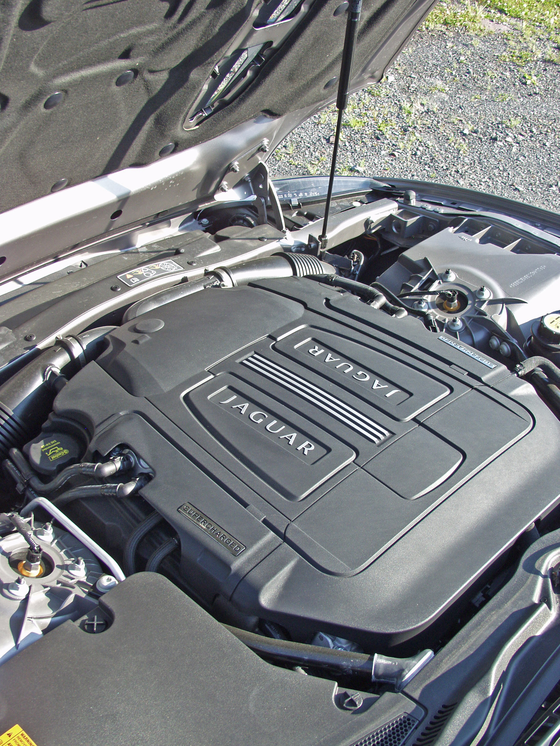 It works very well in neutral. The 5.0-liter supercharged starts up with an appropriate roar. It’s perhaps orchestrated–in all senses of the word, as Jaguar has a tuned trumpet to direct intake sounds to the passenger compartment under full throttle and seemingly on startup.