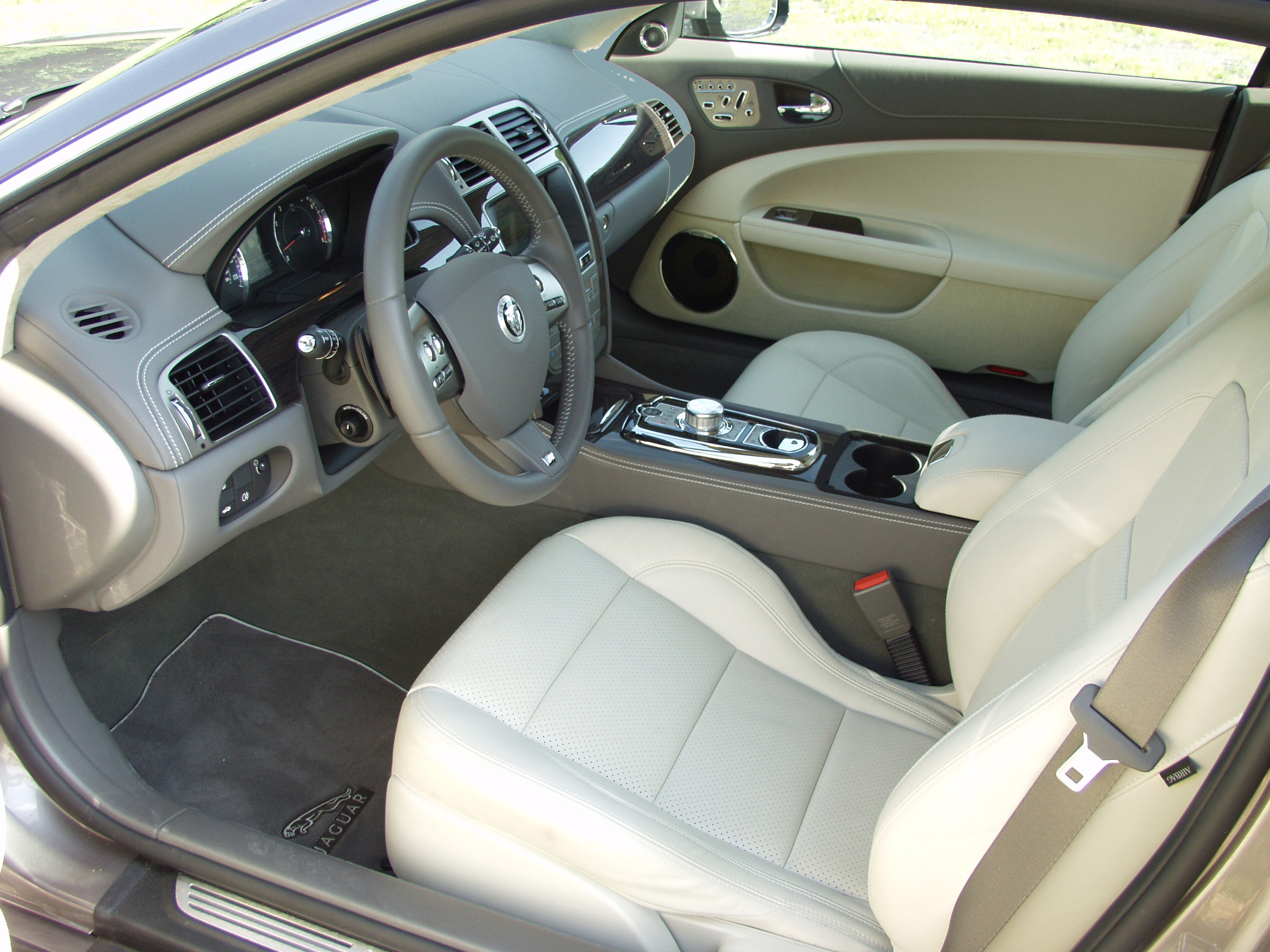 We had already seen the new Jaguar XKR Coupe at the Detroit Auto Show and reported the details. The body is unchanged though a new front bumper/fascia give the 2010 XKR, along with the Jaguar XK, a new face and, with LED taillights, the XKR and XK have a new look from the rear as well. Both the XK and XKR have functional “cheek scoops” that direct cooling air to the front disc brakes though only the XKR have little hood vents that read “SUPERCHARGED”, lest there be any doubt. The two models can also be distinguished by the chromed lower grille on the XKR–it’s black on the Jaguar XK–and the small spoiler on the rear decklid of the XKR.
