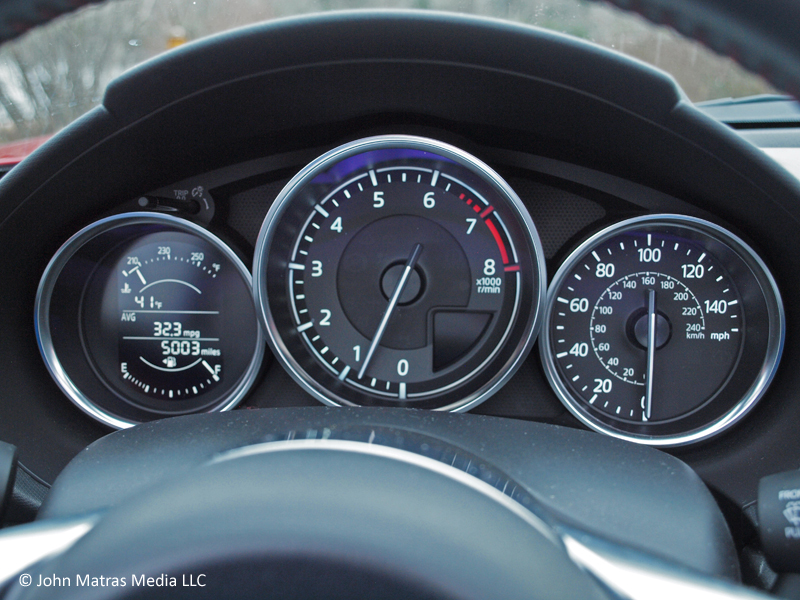 We either need wider feet or Mazda needs to move the brake and throttle pedal closer. It’s a stretch for a number nine shoe to cover the distance easily for accurate heel-and-toe downshifts. (If you don’t know what that means and you own a Miata, hie thee to a driving school. It’s an art form being lost thanks to the pervasiveness of automatic transmission, particularly manu-matic paddle shifters in sports cars. The purpose of a Miata is immersion in sports car experience, and drivers should learn to do it right).