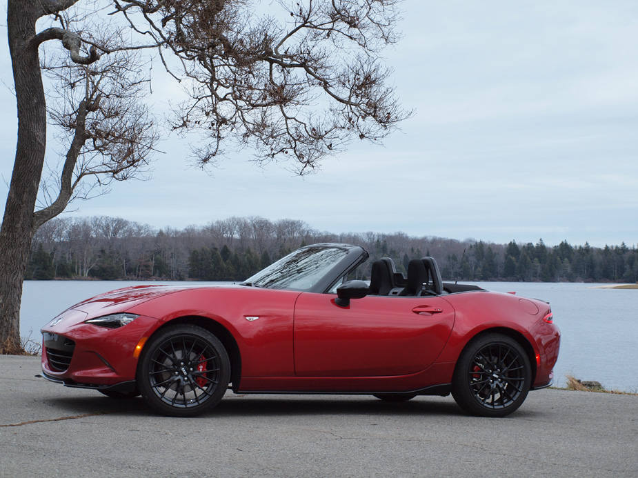 The 2016 Mazda MX-5 Miata Grand Touring lists for $30,065 and adds features including blind spot monitoring, rear cross-traffic alert, adaptive headlights, lane departure warning and automatic high beams. We’d rather put our money in the Brembo and BBS package, especially if any track time is expected.