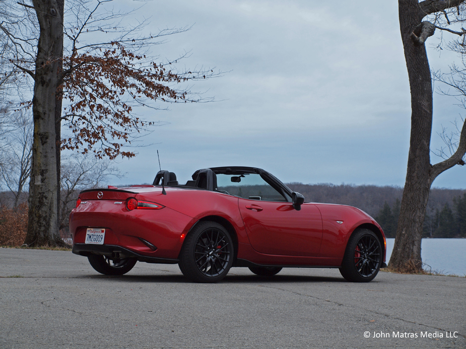 Sport suspension with Bilstein shocks is standard on the Club with the manual transmission, as is a torque-vectoring limited-slip rear differential. The special suspension gives the Miata Club a less than cushy ride over rough roads, but it pays back in sharp response in corners and curves.