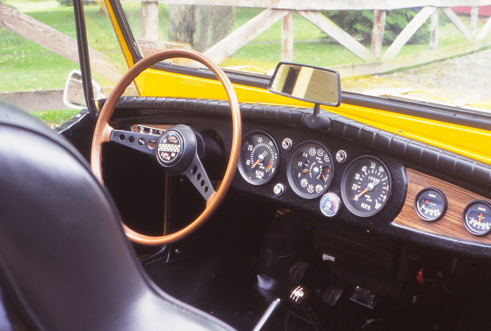 Despite the Spring’s limited horsepower, it takes a real man to drive one. Or at least someone secure in his manhood. Though cuter than pink petticoats, the car can be driven with abandon. That’s how Patrick Ireland drives his, revving the pushrod four to its 6000-RPM redline, holding the single throttle plate of the Weber carb as wide open as possible. The 145SR-12 radials may not inspire confidence on slippery pavement, but in the dry, Siata’s know-how with the basic Fiat platform belies the Spring’s 35/65 weight ratio.